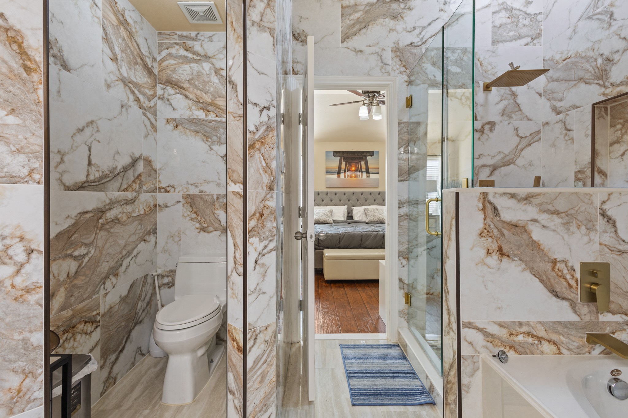 The owner has invested a tremendous amount of money, care, and heart into upgrading and maintaining this property, ensuring it's move-in ready and built to impress. Step inside to a fully updated interior featuring engineered wood floors throughout (no carpet!), designer lighting, and modern finishes. The kitchen boasts granite countertops, stylish backsplash, and sleek cabinetry, while the bathrooms shine with high-quality tile from floor to ceiling, quartz vanities, modern hardware, a relaxing bathtub, and a spa-like standing shower.